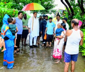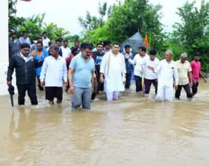 भर पावसात बांधावर जाऊन केली पाहणी ६५ मिलिमीटर पावसाची नोंद सरसकट पंचनामे करा