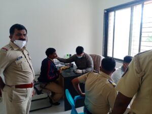 गेल्या दीड वर्षापासून करोनाच्या प्रादुर्भावामुळे बंदोबस्तात दिवस-रात्र एक करणाऱ्या पोलिसांच्या आरोग्याचे अनेक प्रश्न पुढे येत आहेत. विशेषतः दिनचर्या बिघडल्याने व तणाव वाढल्याच्या पार्श्वभूमीवर येथील शहर पोलीस स्टेशनमध्ये पोलीस निरीक्षक वासुदेव देसले यांच्या पुढाकाराने डॉ. श्री गावडे व टीम,तेजस्विनी हेल्थकेयर मुबंई,शनिवारी (९) रोजी हे शिबिर घेतले. डॉ. गावडे यांनी शहर पोलिस निरीक्षक वासुदेव देसले, यांच्यासह पोलीस अधिकारी,पोलीस अंमलदार, होमगार्ड व त्यांचे कुटुंब यांची तपासणी केली. कोरोनामुळे वर्षभर सगळे ठप्प झाले होते. परंतु आता सरकारने मंदिरे उघडण्यास परवानगी दिल्यामुळे हळूहळू सर्व पूर्वपदावर येत आहे. आता सण-उत्सव सुरु झाल्यामुळे पाठोपाठ येणाऱ्या सणामुळे पोलिसांवर बराच ताण पडणार आहे त्यांना आता २४ तास ड्यूटी करावी लागणार आहे. त्यामुळे पोलीस निरिक्षक वासुदेव देसले यांनी योग्य निर्णय घेऊन सावधगिरीचा उपाय म्हणून तातडीने तपासणी शिबिर घेऊन एक प्रकारे पोलिसांना व त्यांच्या कुटुंबाला दिलासाच दिला आहे.